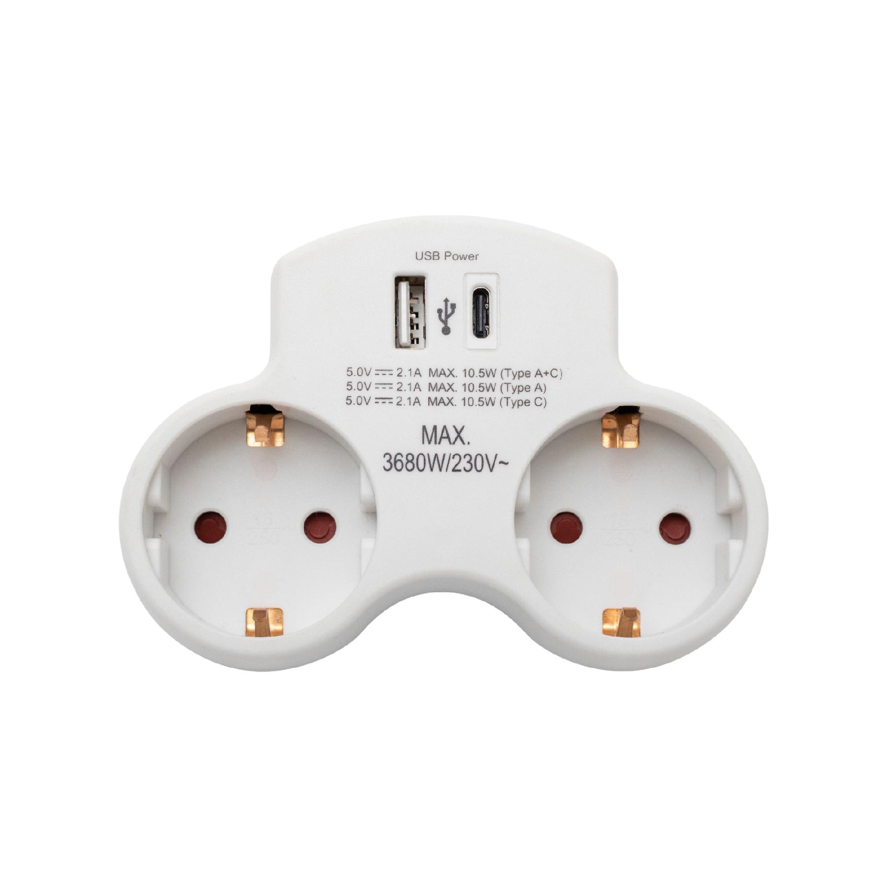 HOME TPF2USBC USBC hálózati töltő, 2.1A, max. 3680 W, 2 db földelt hálózati aljzat gyermekvédő zsaluval